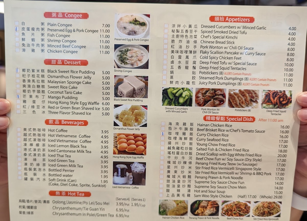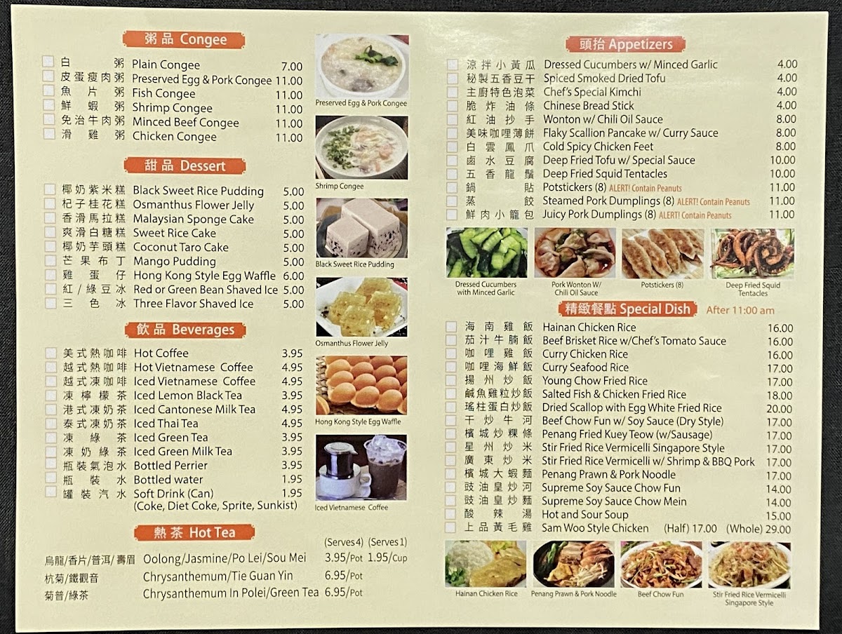 Welcome to Sam Woo Cafe, a delightful gem nestled in Artesia, CA, where you can enjoy authentic Hong Kong-style fast food that captures the essence of Cantonese cuisine. The moment you step into this bustling eatery, you're greeted by a warm and inviting atmosphere that's perfect for both families and groups of friends. With its vibrant decor and the tantalizing aromas wafting from the kitchen, you’ll feel an immediate sense of anticipation for the culinary adventure that awaits you.
