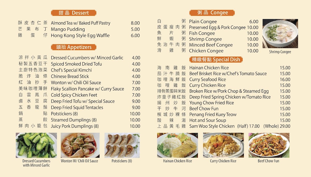 At Sam Woo Cafe, the menu offers a mouthwatering selection of dishes that highlight the rich flavors and textures of Hong Kong cuisine. Start your meal with their Dressed Cucumbers with Minced Garlic (US$4.00), a refreshing and zesty appetizer that perfectly balances tangy and savory notes. For those with a penchant for bold flavors, the Spiced Smoked Dried Tofu (US$4.00) is a must-try, delivering a delightful crunch with every bite.